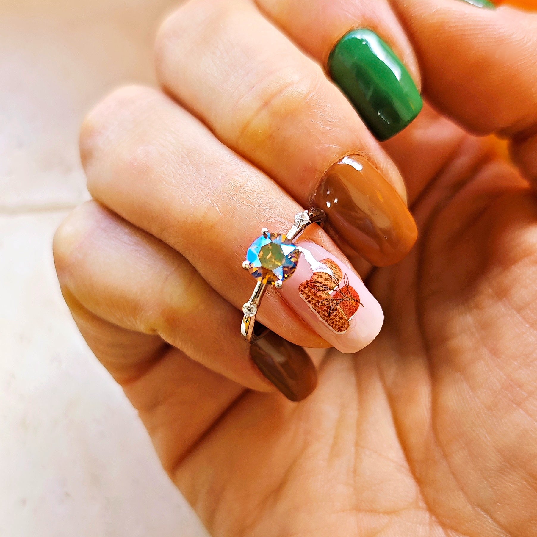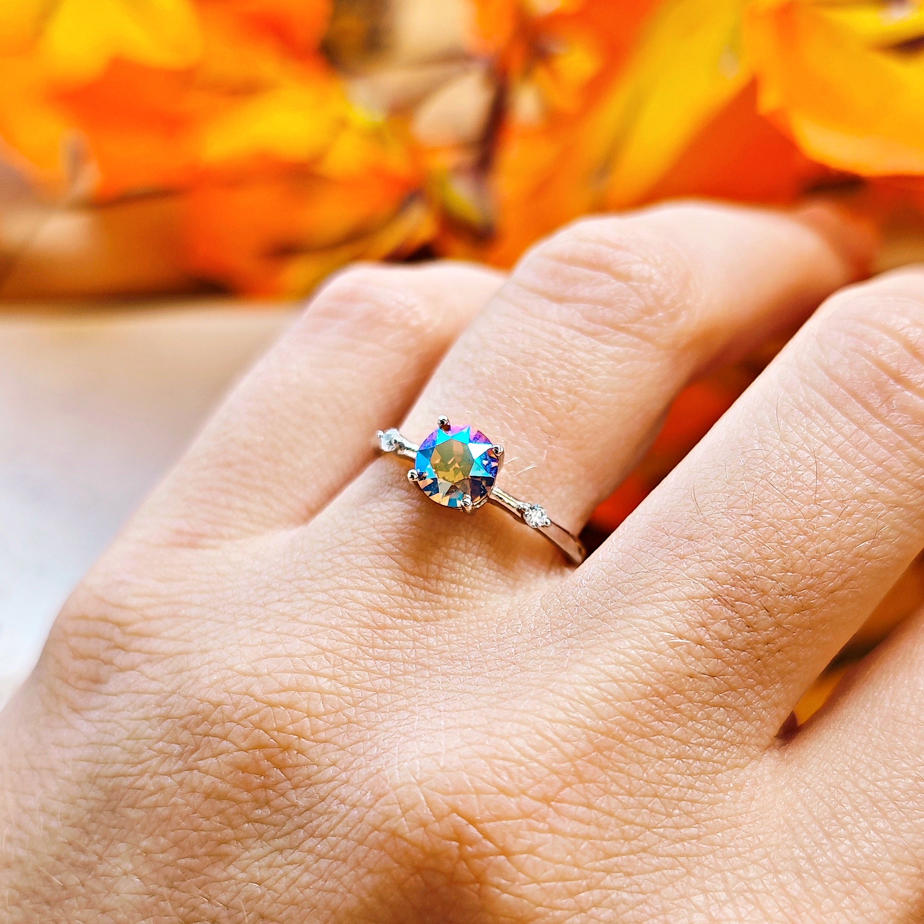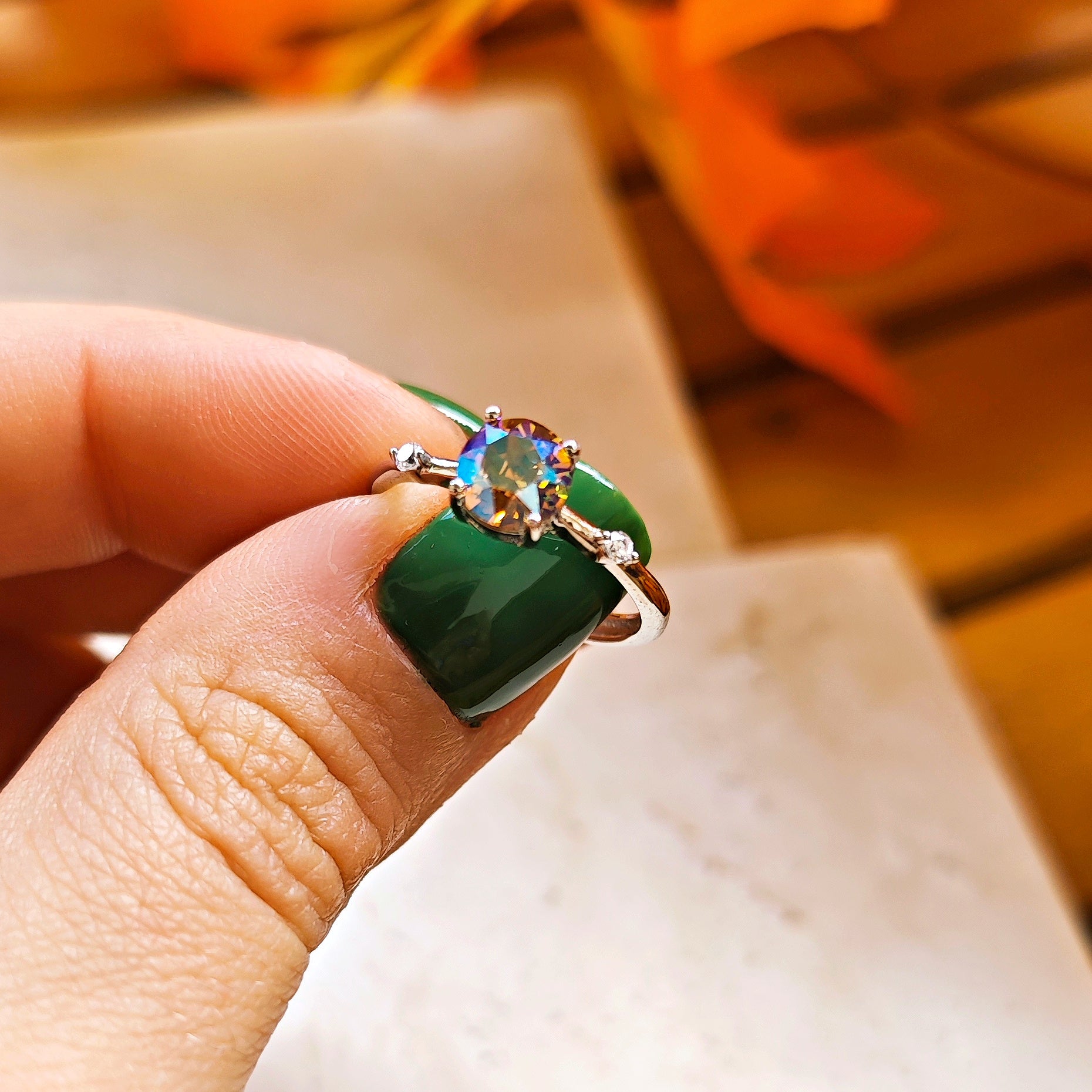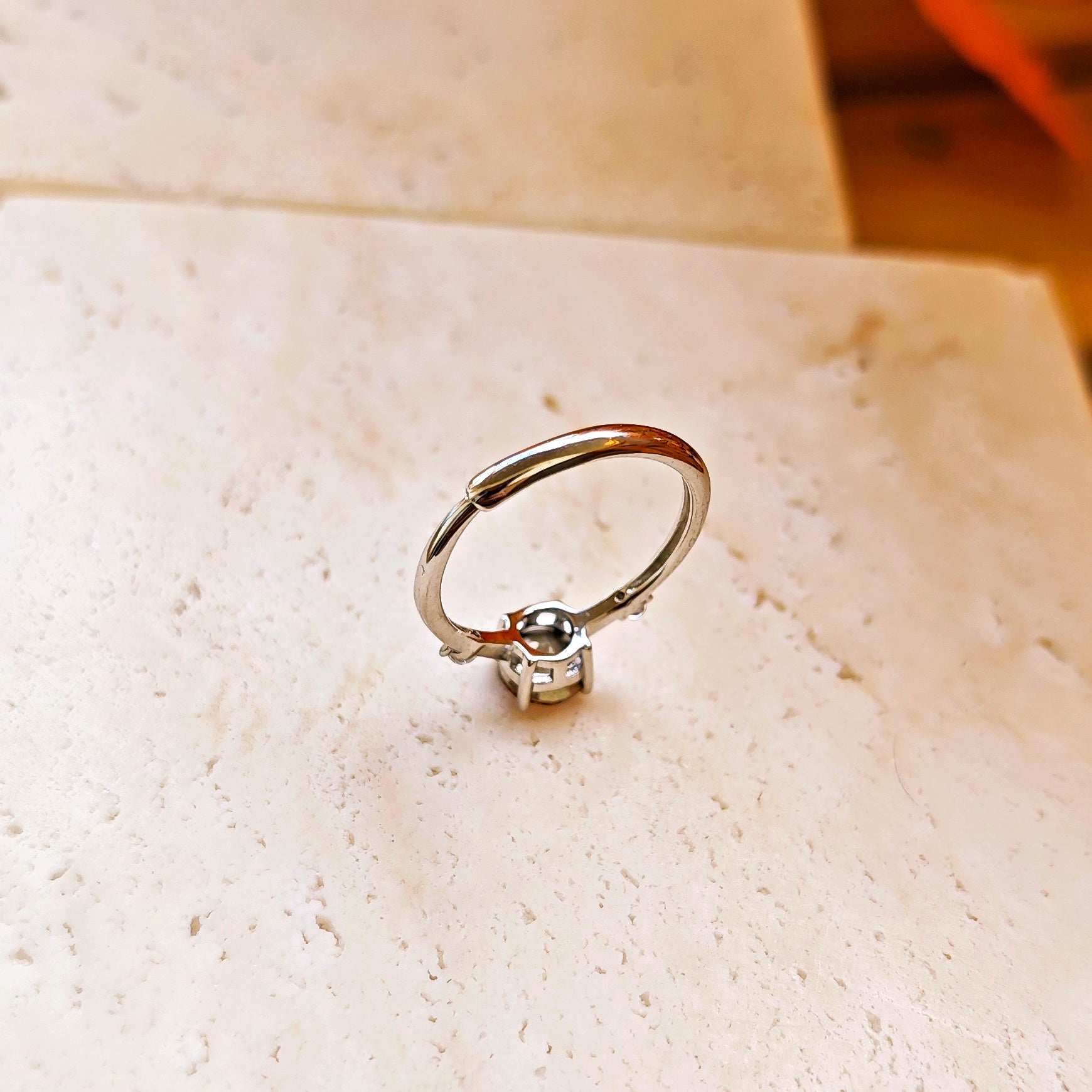 An enchanted forest path leads you into the Brothers Grimm fairy tale, Hansel and Gretel. The adjustable 925 silver band features two small cubic zirconia crystals, an inseparable symbol of the two brave siblings. At the center, a round PureCrystal cabochon in Colorado Light Topaz Shimmer shines like the enchanted sweets of the gingerbread house. A jewel that speaks of adventure, cunning, and hope, transforming the magic of the fairy tale into a precious talisman to wear.