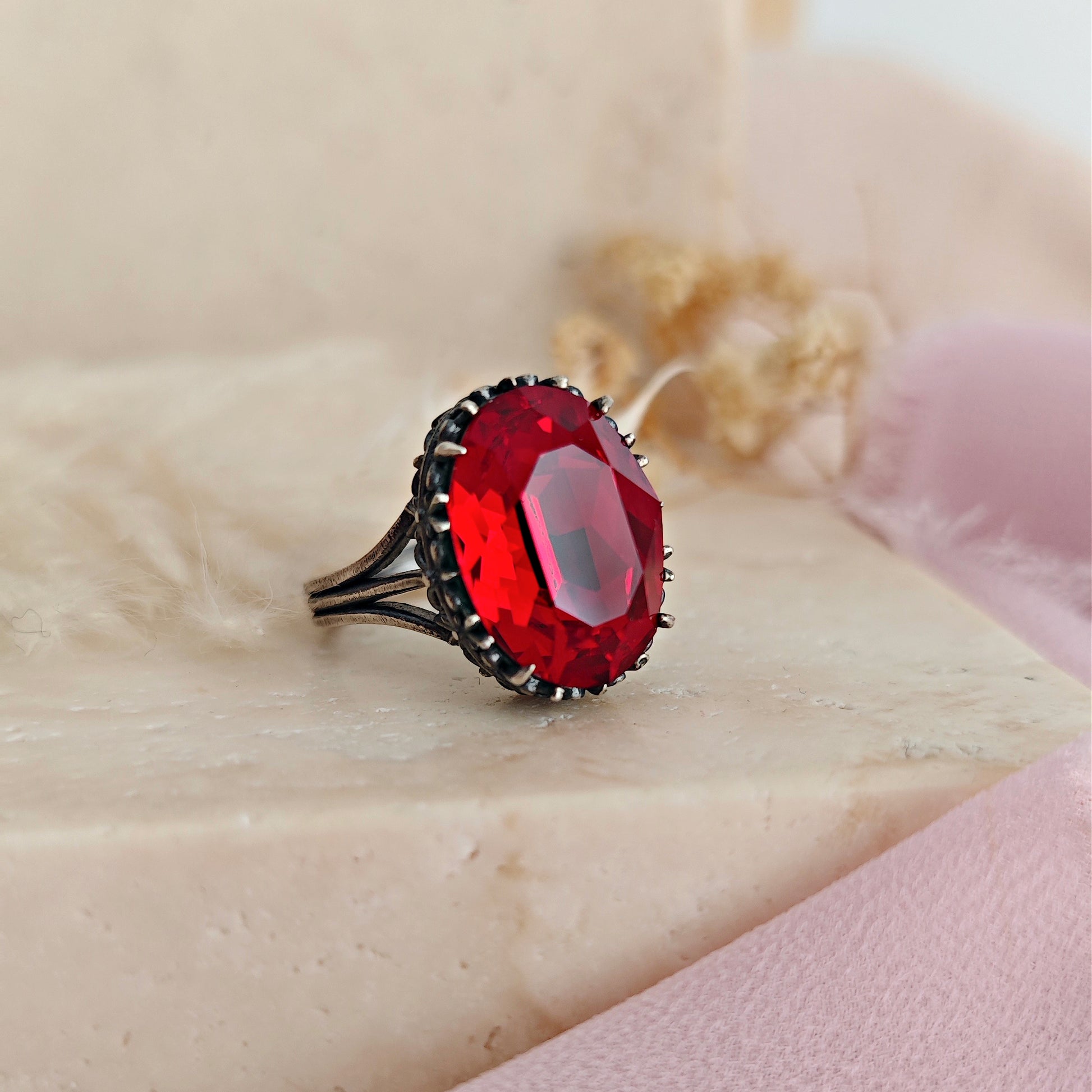 Ruby Red Crystal Ring, Gothic Victorian Statement Ring // SPELL ON YOU