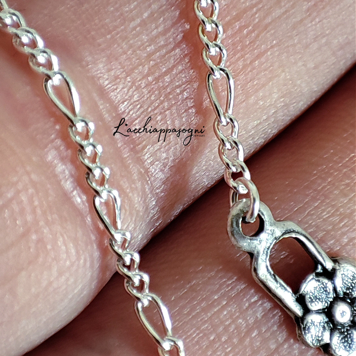 The 925 sterling silver figaro chain measures 40cm approx, for a total length of 45cm approx.