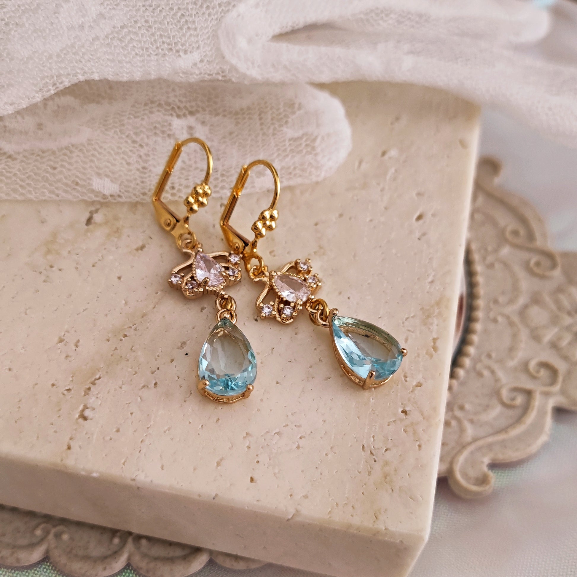Orecchini "Daphne" con cristalli a goccia azzurri