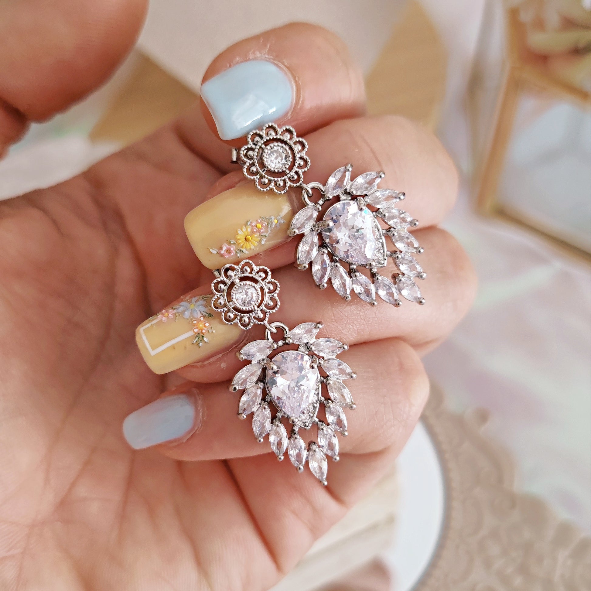 Realizzati con componenti in ottonerodiato, sono composti da orecchini a lobo a forma di margherita da cui pendono foglie tempestate di cristalli cubic zironia, per donare eleganza senza tempo e raffinatezza, degne del Diamante della Stagione.
