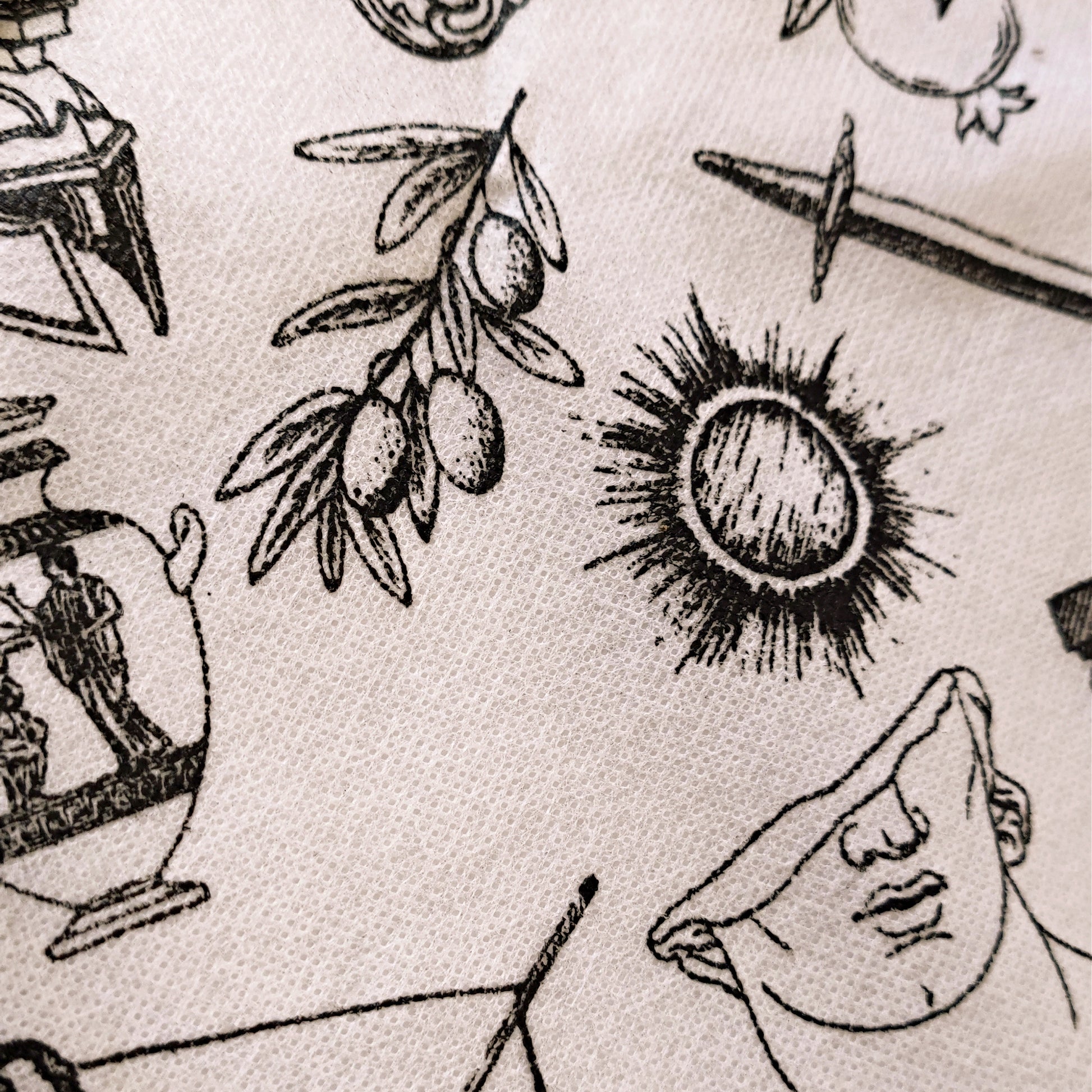 Ed ecco la regina della collezione "Heroes&Gods", la tote bag con alcuni dei simboli più celebri di Dèi ed Eroi della mitologia greca.