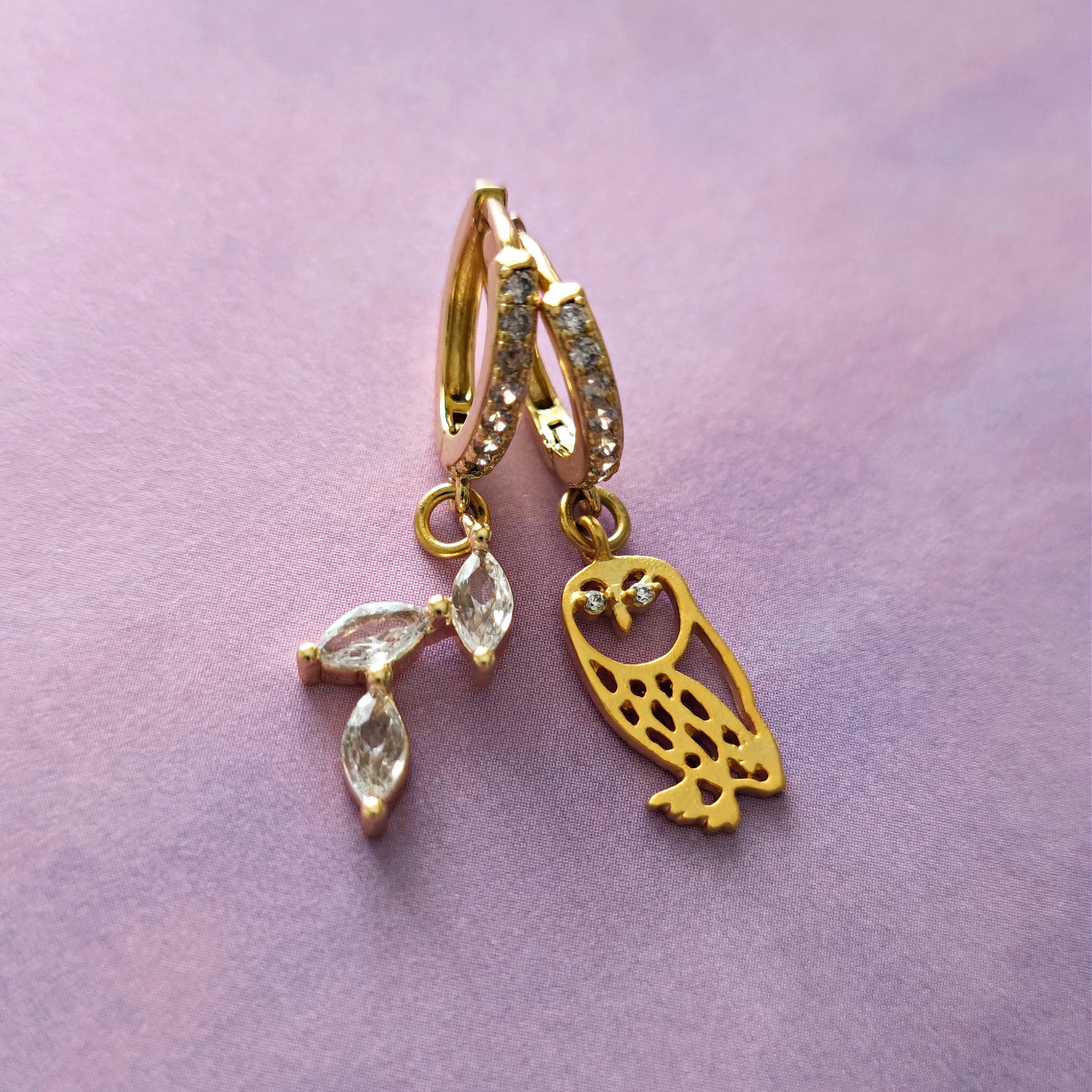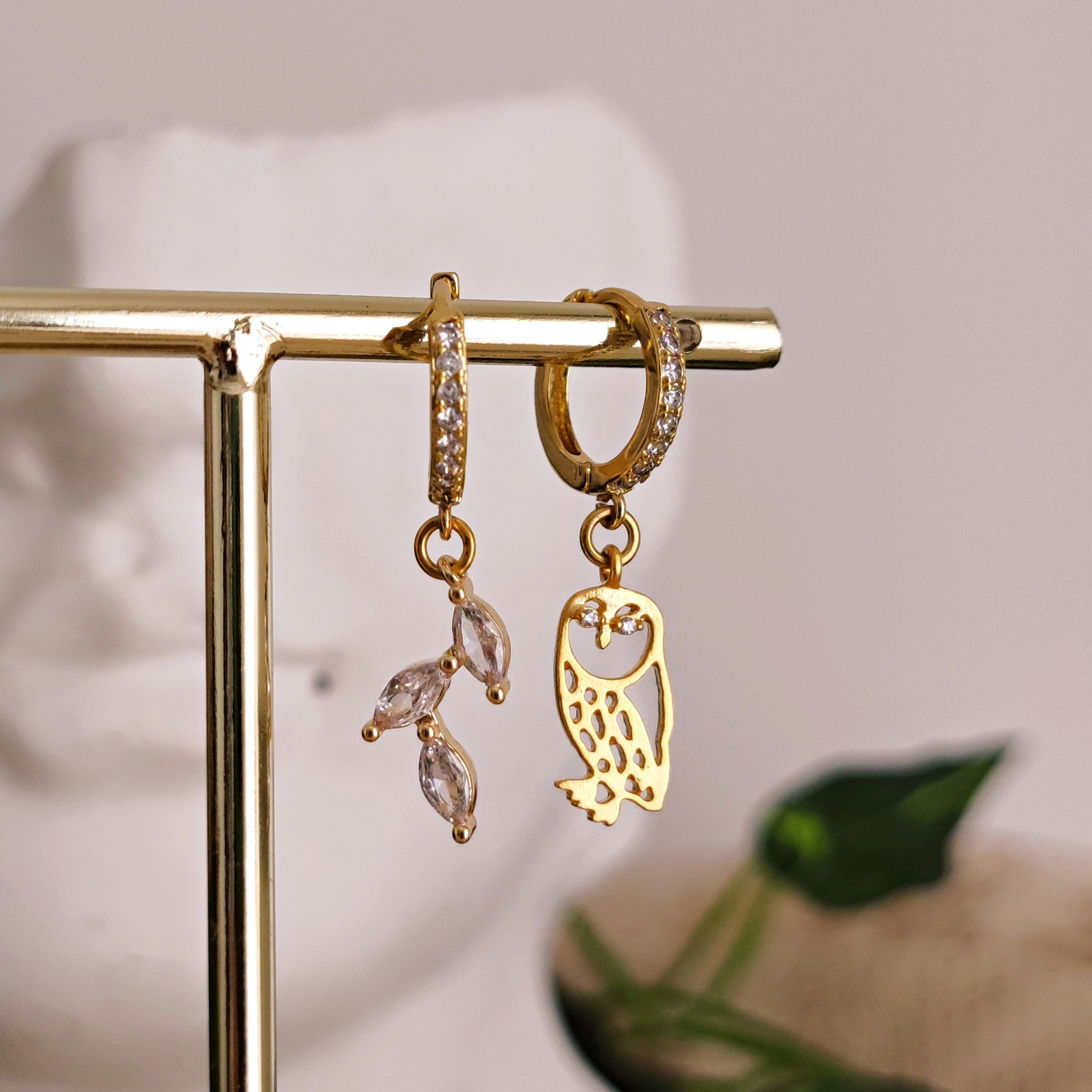 I cerchietti one-touch sono tempestati da cristalli cubic zirconia, così come le foglie, e gli occhi della civetta.