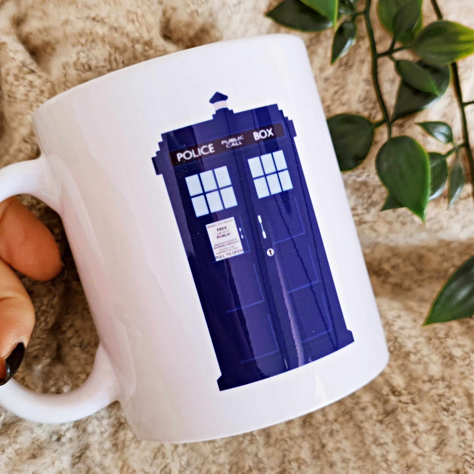 Sul fronte il mitico Tardis, sul retro l'indimenticabile Undicesimo Dottore con il suo motto "Bow Ties are Cool".