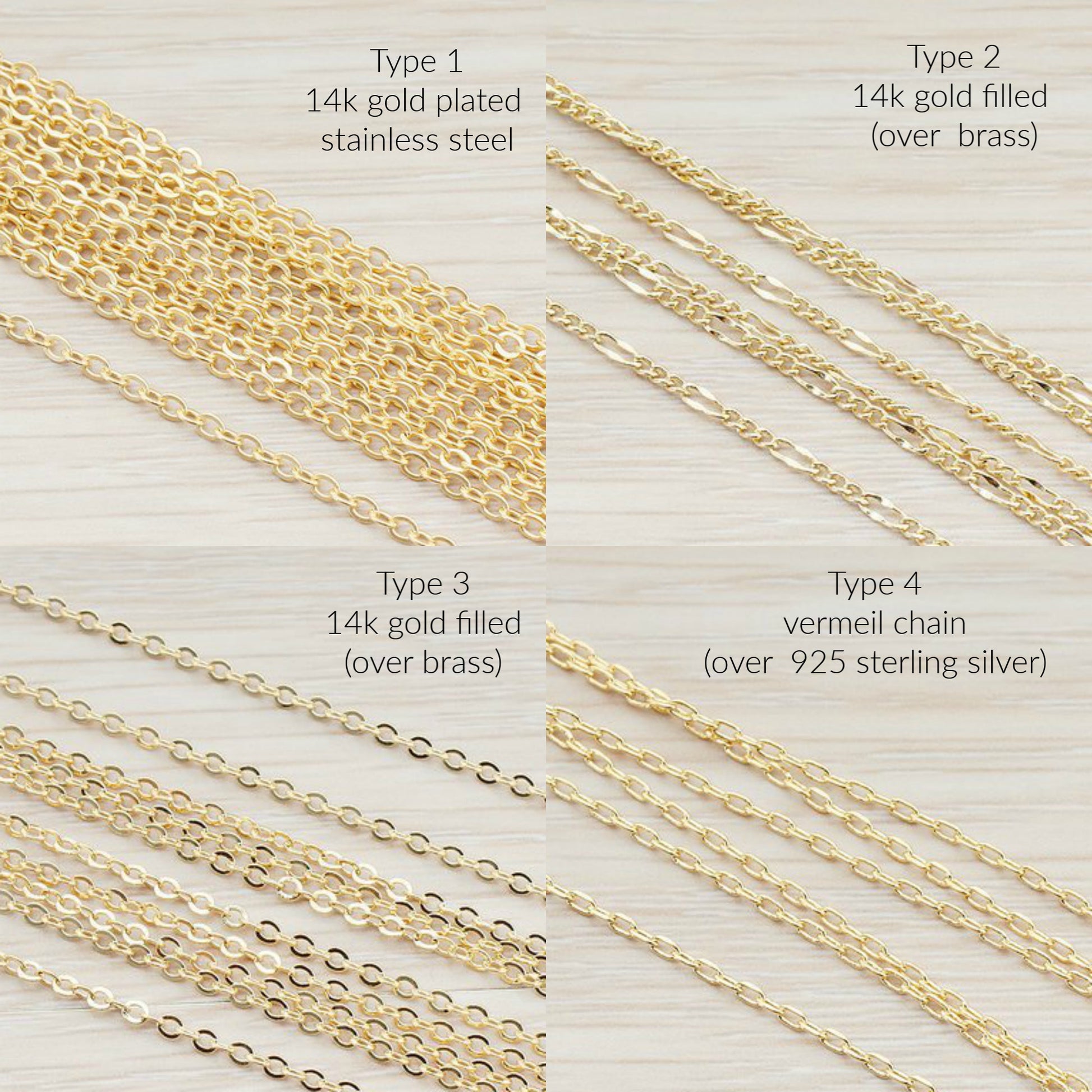 - type 3: ottone gold filled 14k a maglie ovali (alta qualità, lunga durata)