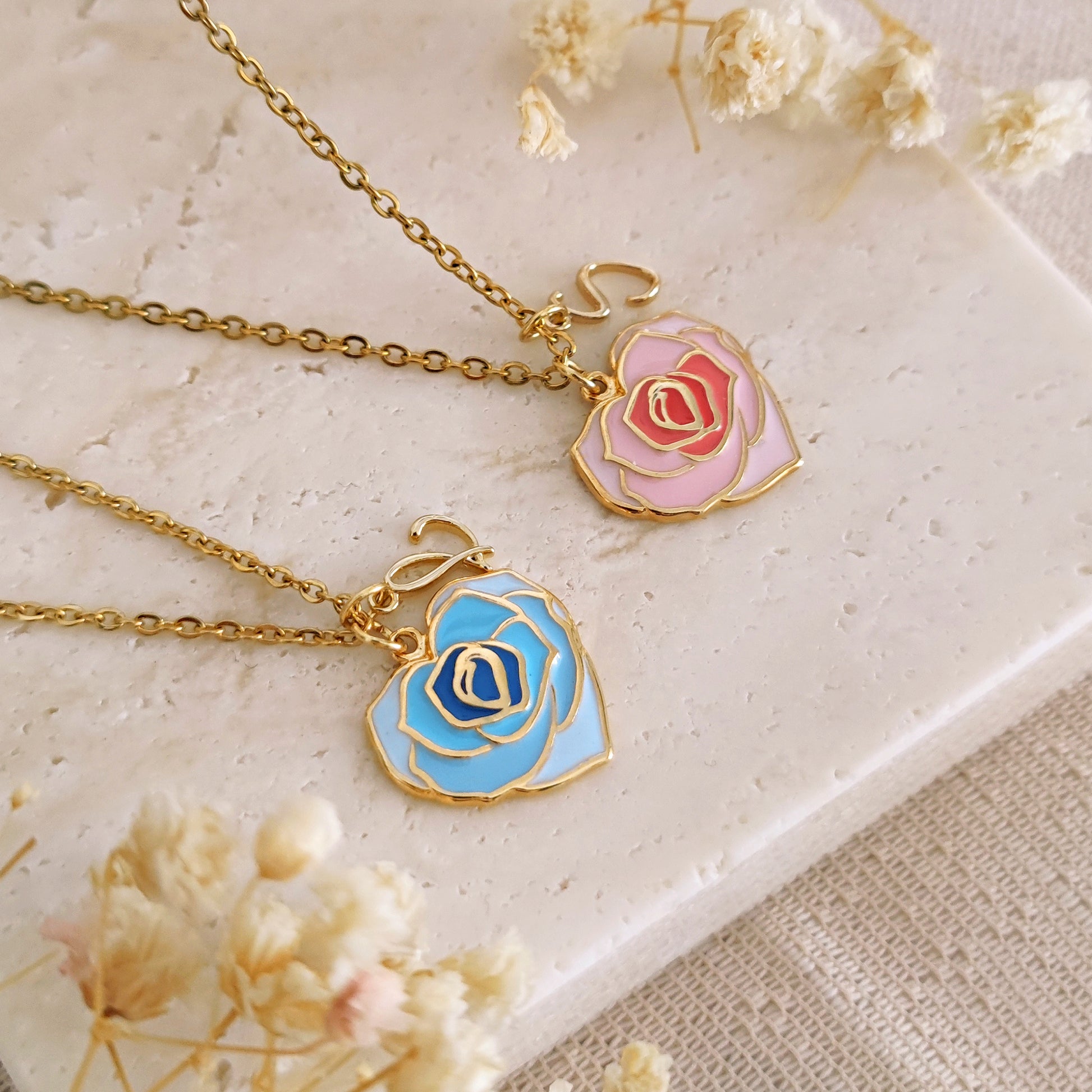 Ispirata ai sentimenti che sbocciano come una rosa meravigliosa, e realizzata a mano con la massima cura, la collana "Bloom" con ciondolo a forma di cuore con rosa smaltata e lettera personalizzata è il modo più dolce per tenere un sentimento d'amore vicino al cuore. Perfetta per essere condivisa con la migliore amica, o per essere regalata ad una persona speciale, alla propria mamma, alla sorella o perchè no, alla damigella del tuo matrimonio, la collana può essere personalizzata con un'iniziale per un tocco ancora più unico e speciale.