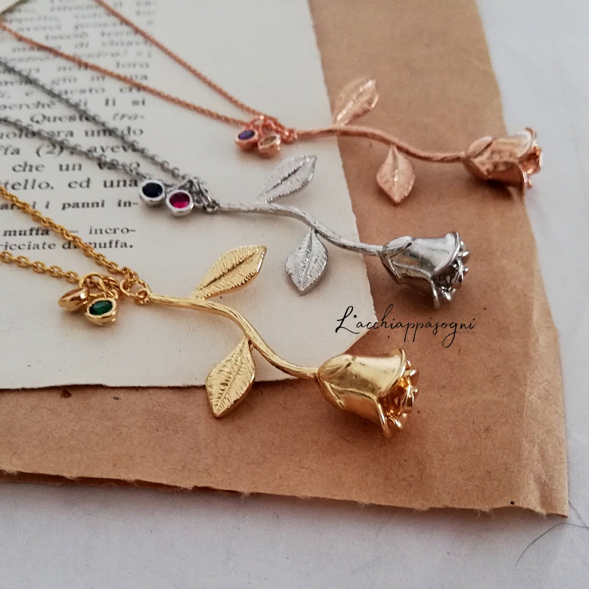 Scegli un regalo unico e denso di significato con la collana "Rose of Love", realizzata a mano con cura e composta da un pendente a forma di rosa (39 x 10 mm) incredibilmente rifinito, con piccoli zirconi cubici di che rappresentano le "pietre di nascita".