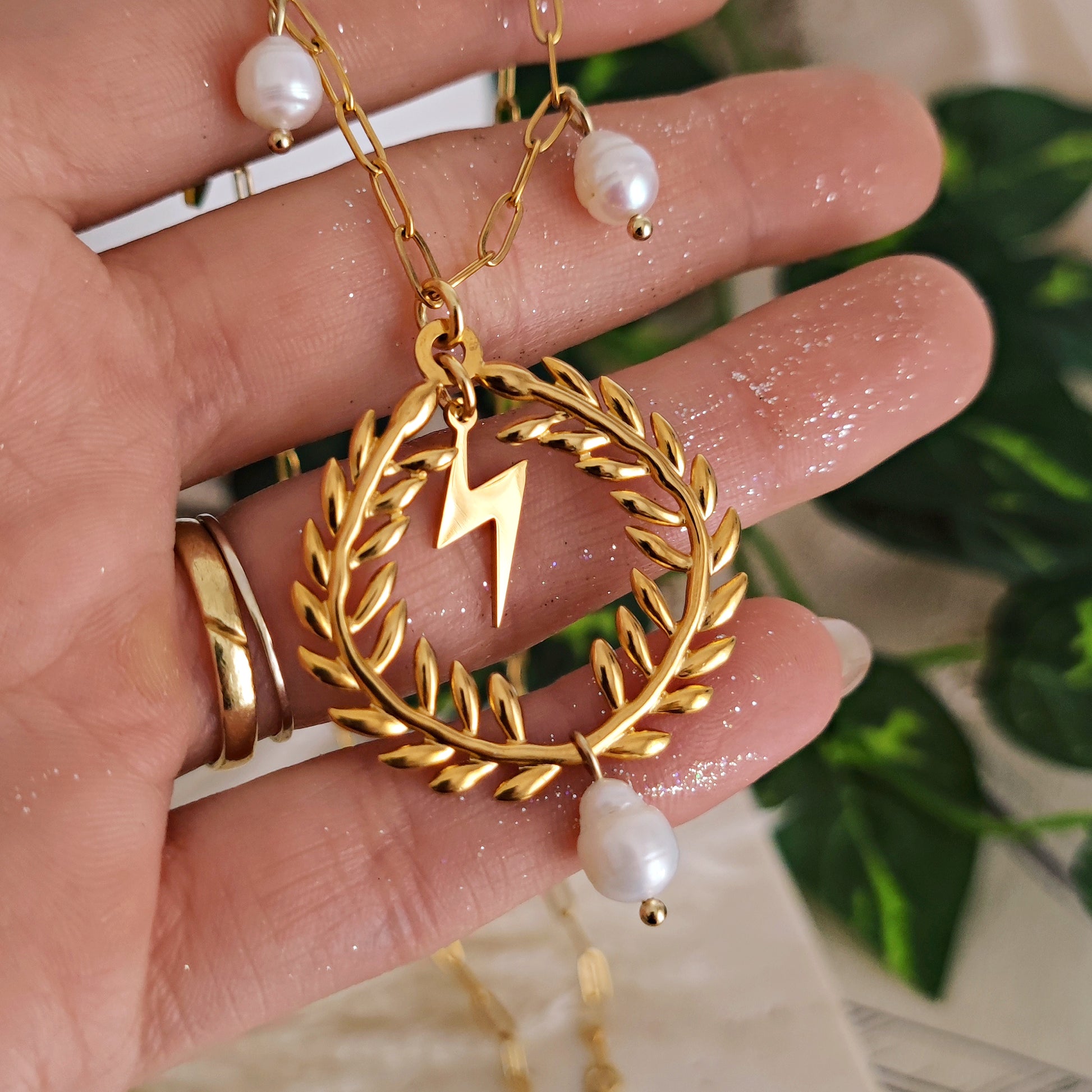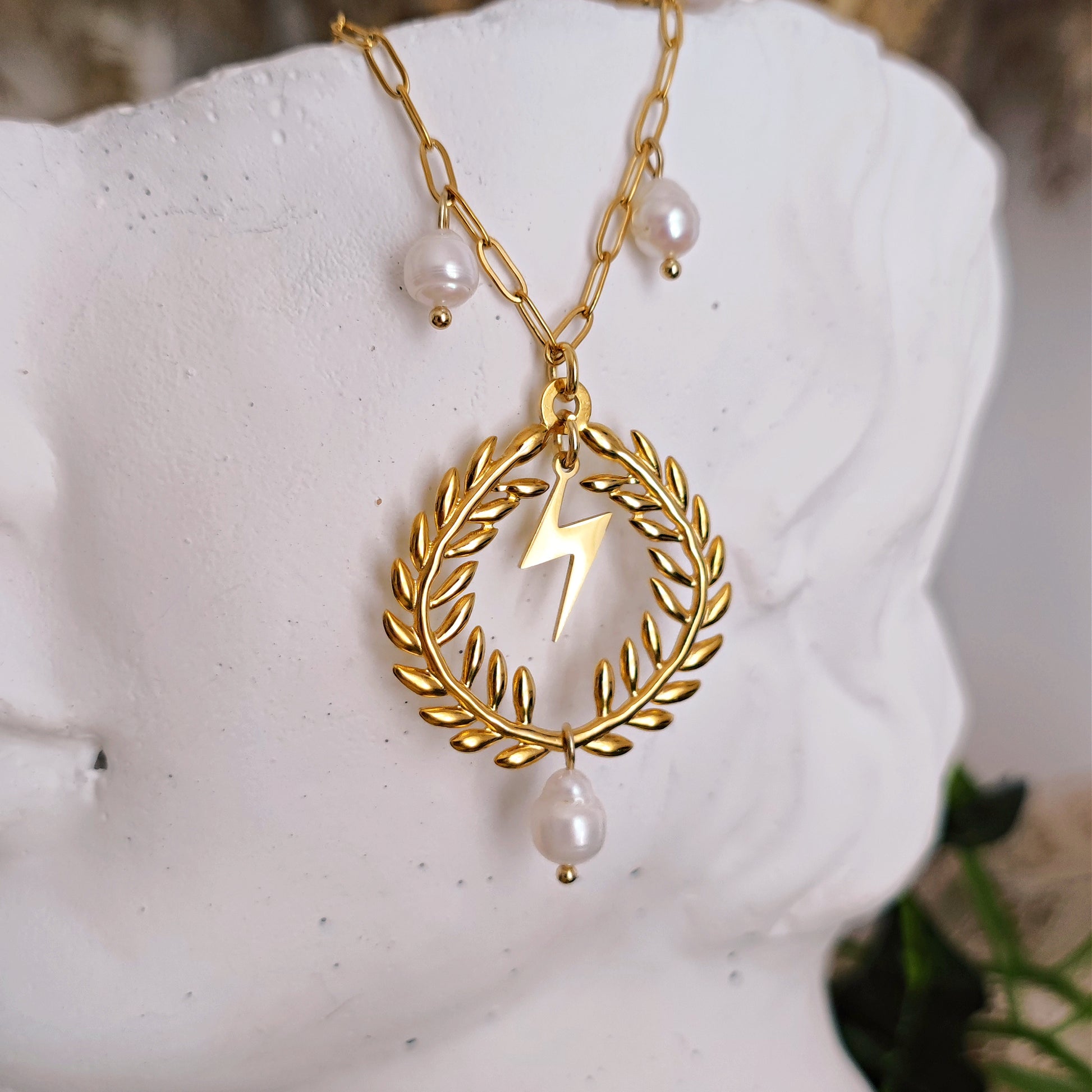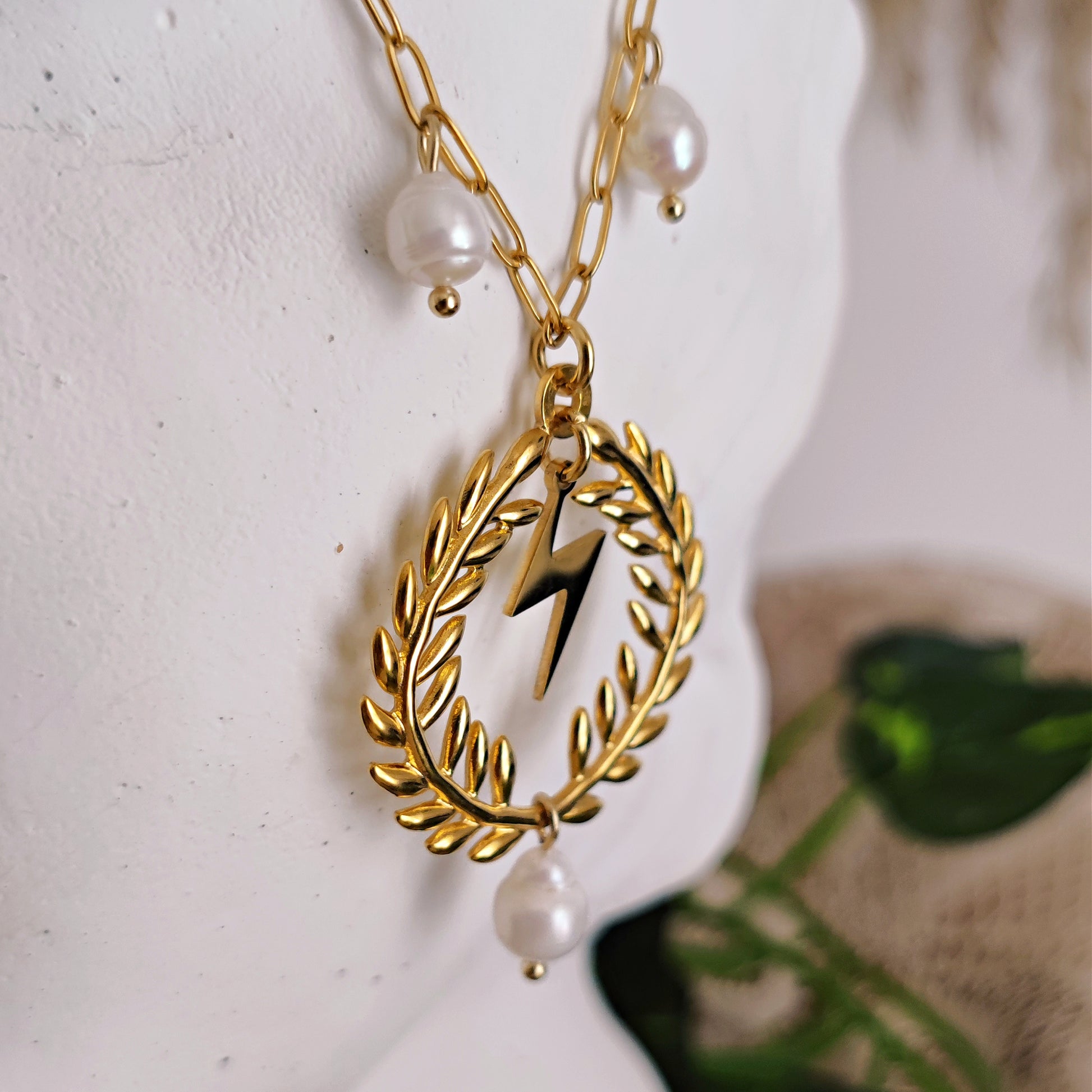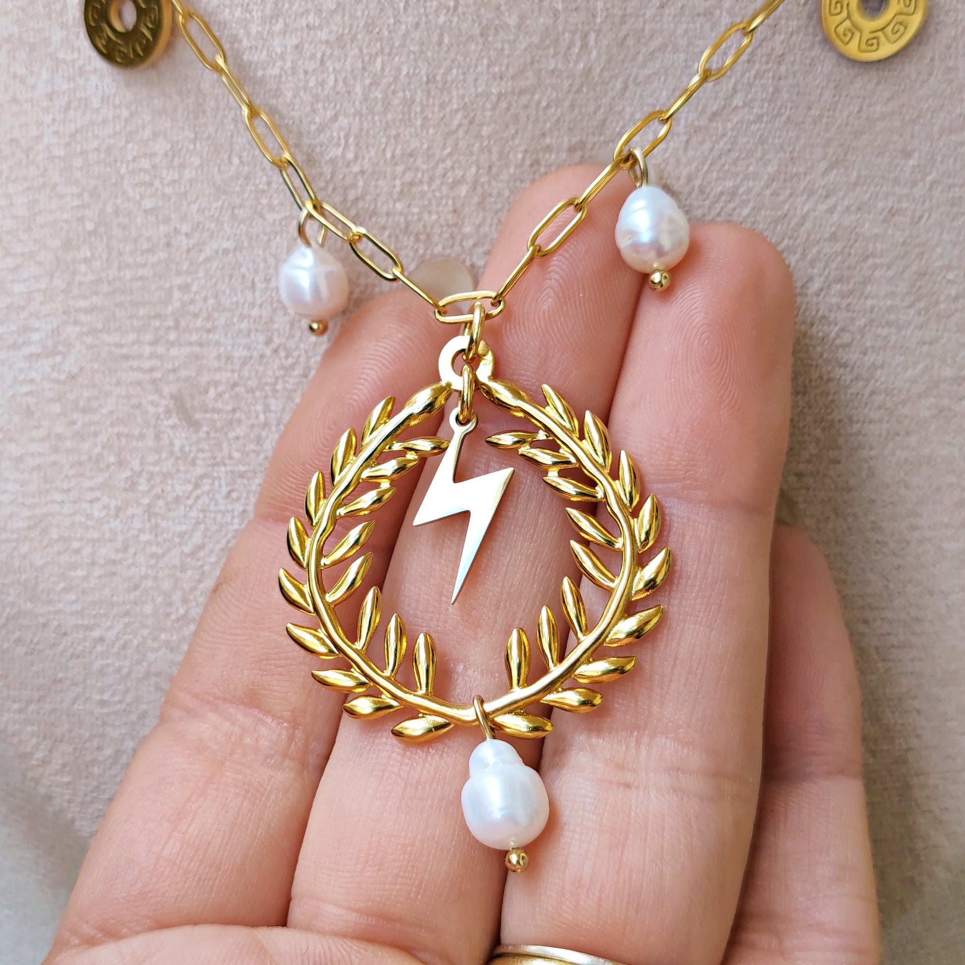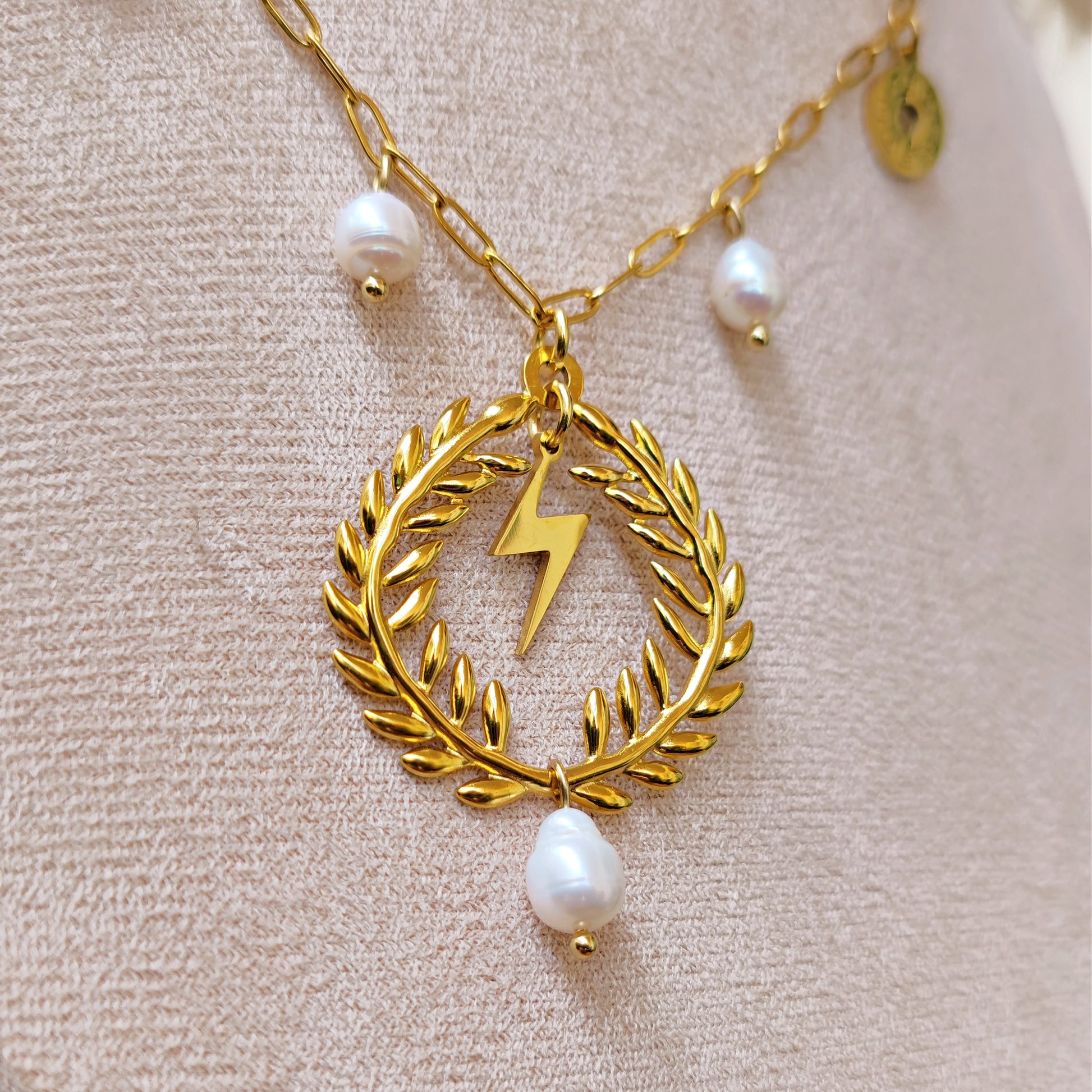 Collana "King Zeus" con corona di alloro, perle e satta