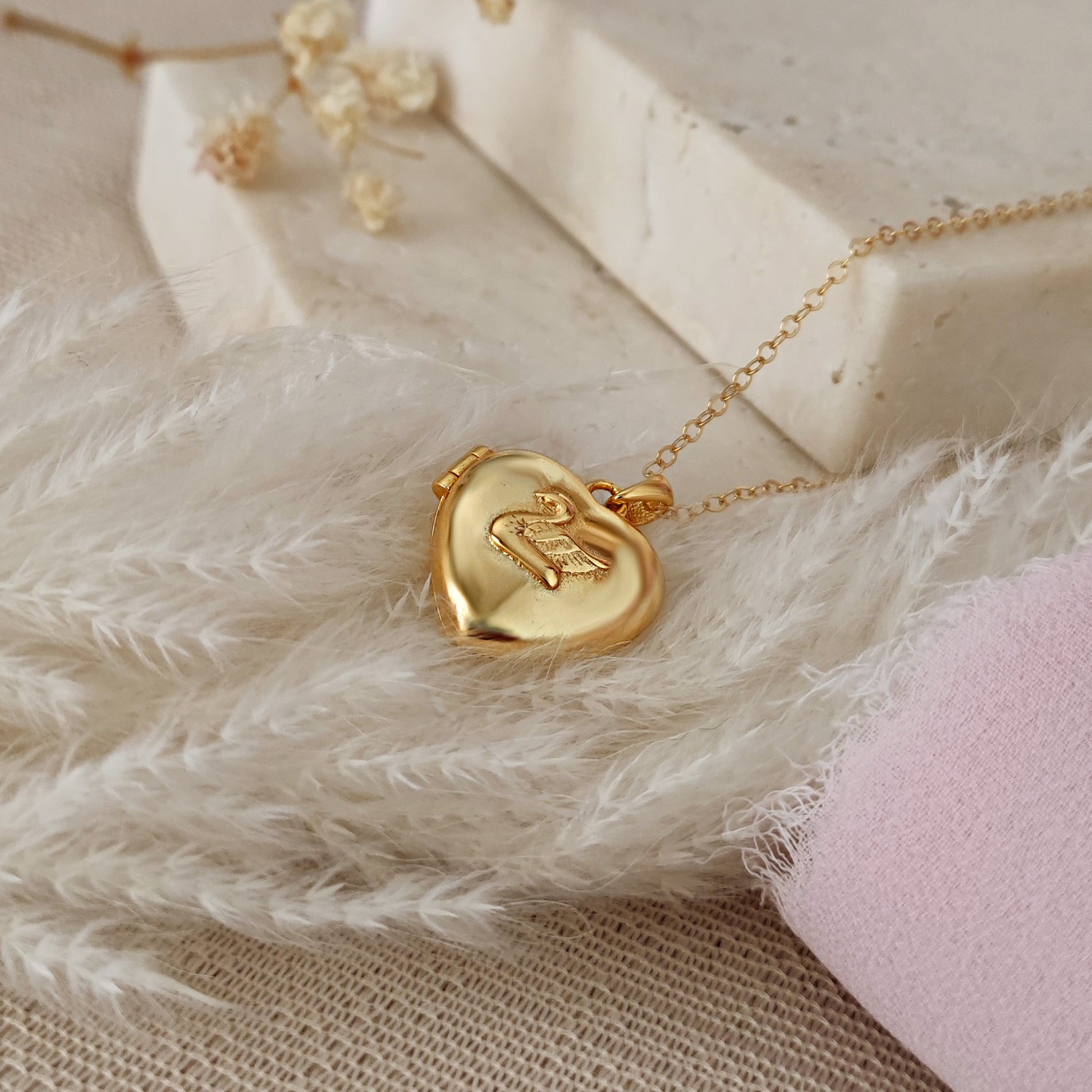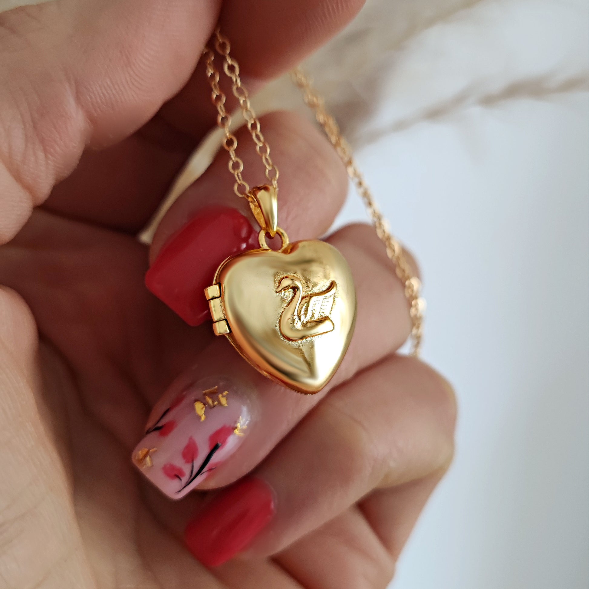 Collana Cuore apribile Cigno, oro - SMALL OTTONE PLACCATO ORO