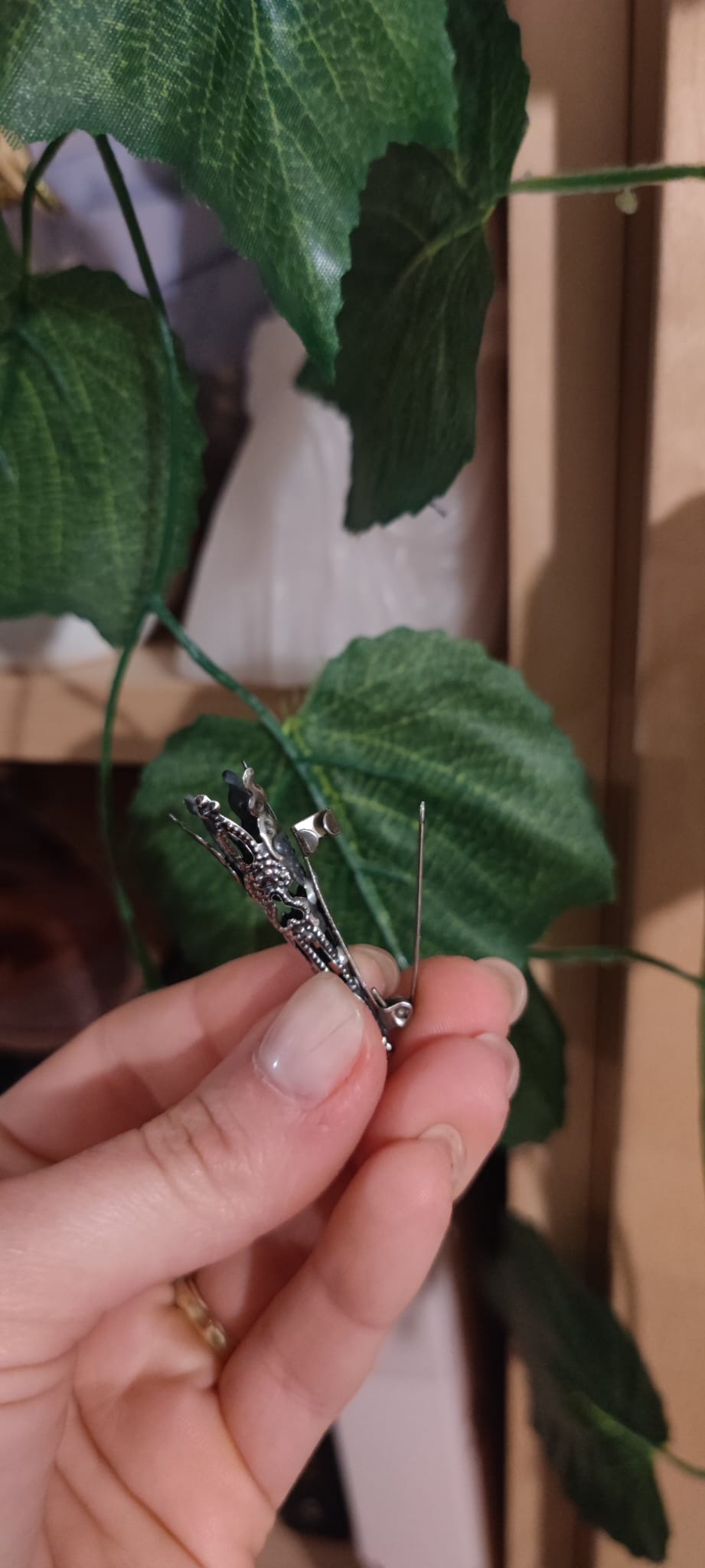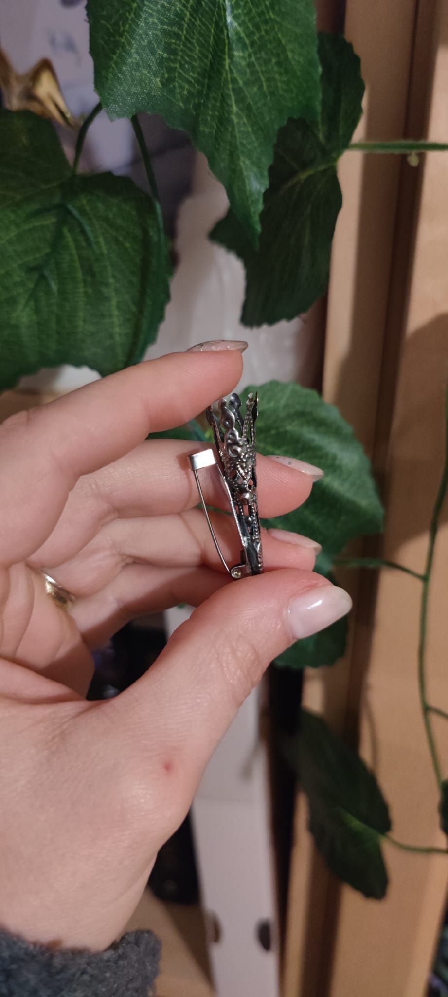 • 5 spille porta fiori all'occhiello art deco in ottone placcato argento anticato (10€ cad.)