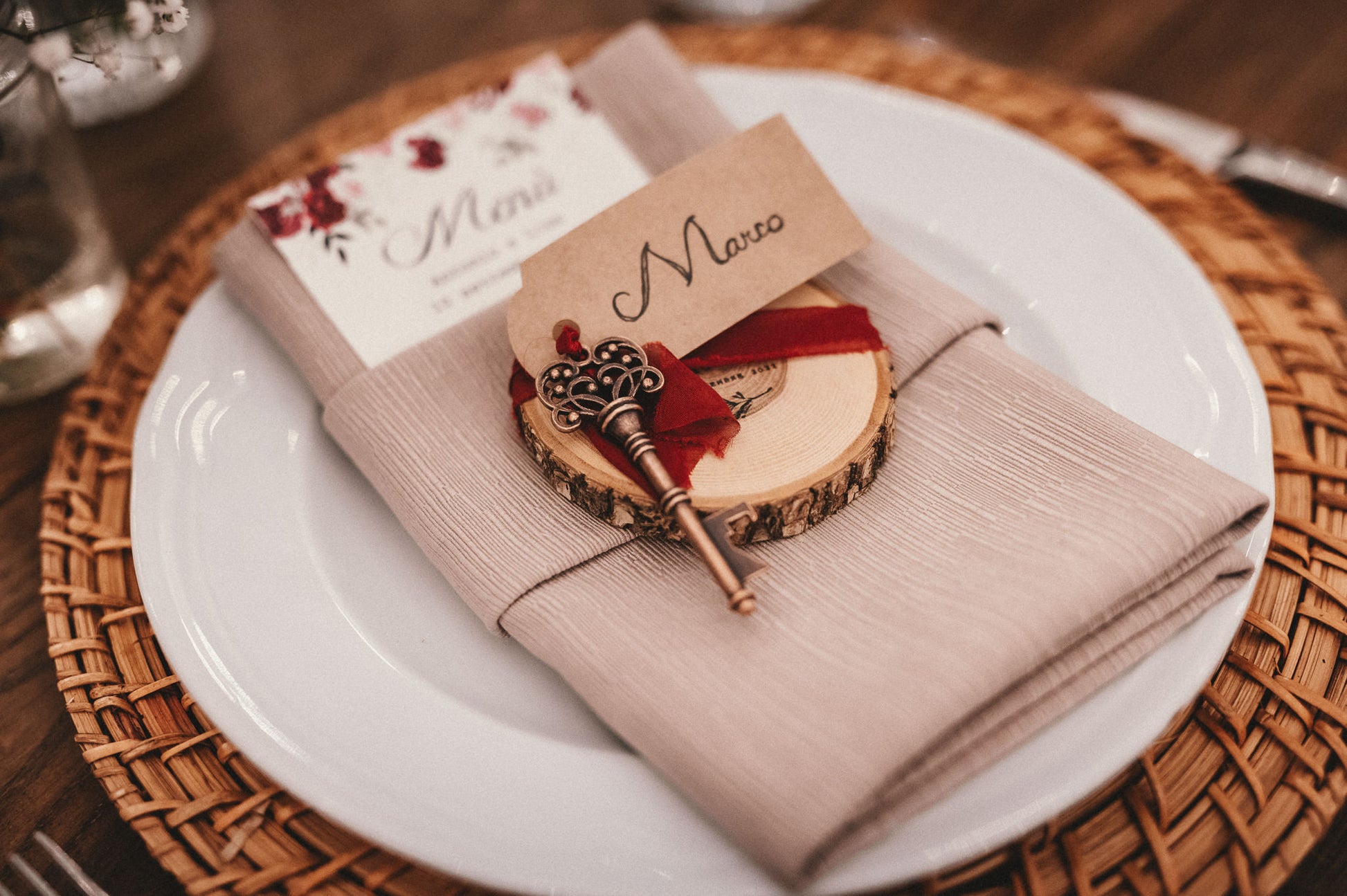 Segnaposto in legno con tag, nastro chiffon e chiave apribottiglia, segnaposto matrimonio con nome personalizzabile, cadeau per gli ospiti