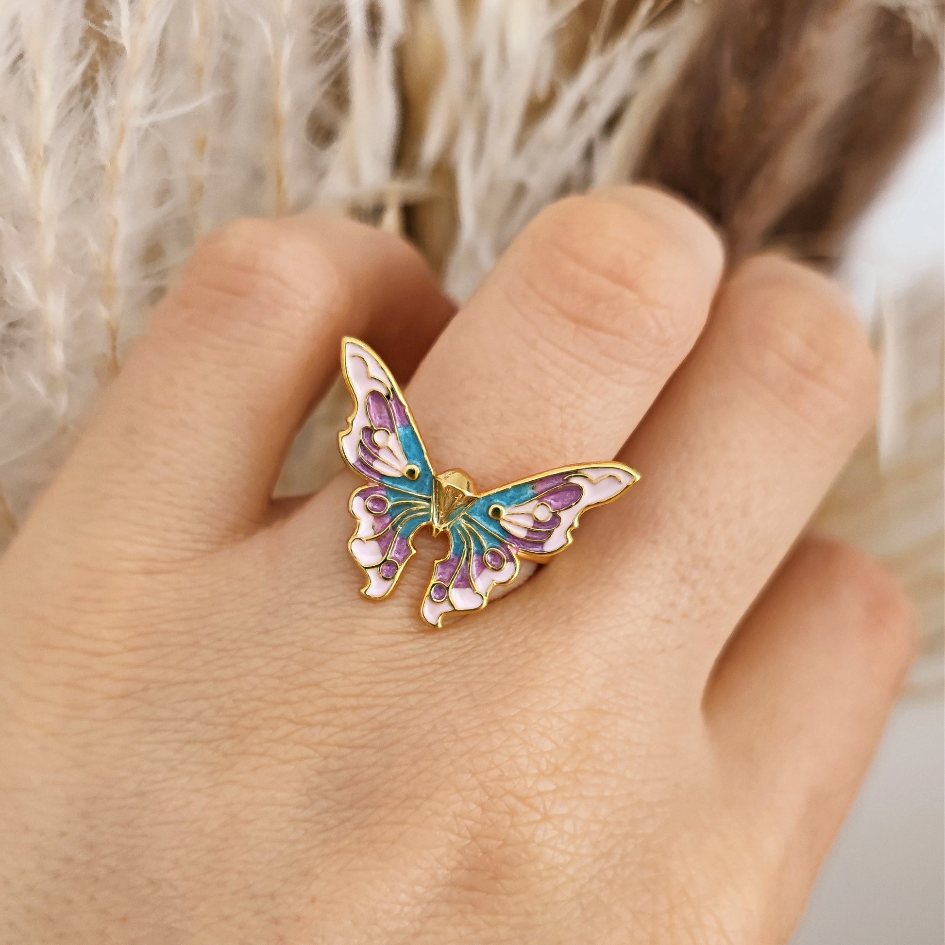Ammira l'incanto di questo squisito anello a farfalla fatto a mano, dove la delicata bellezza incontra l'eleganza regale. Le sue ali, meticolosamente realizzate e amorevolmente smaltate in tonalità pastello, evocano un bizzarro caleidoscopio di colori, che ricorda un giardino da favola in piena fioritura. Ogni tratto del pennello dell'artigiano cattura l'essenza di una leggera brezza, mentre le ali svolazzano con grazia, emanando un'aura di grazia e femminilità.
