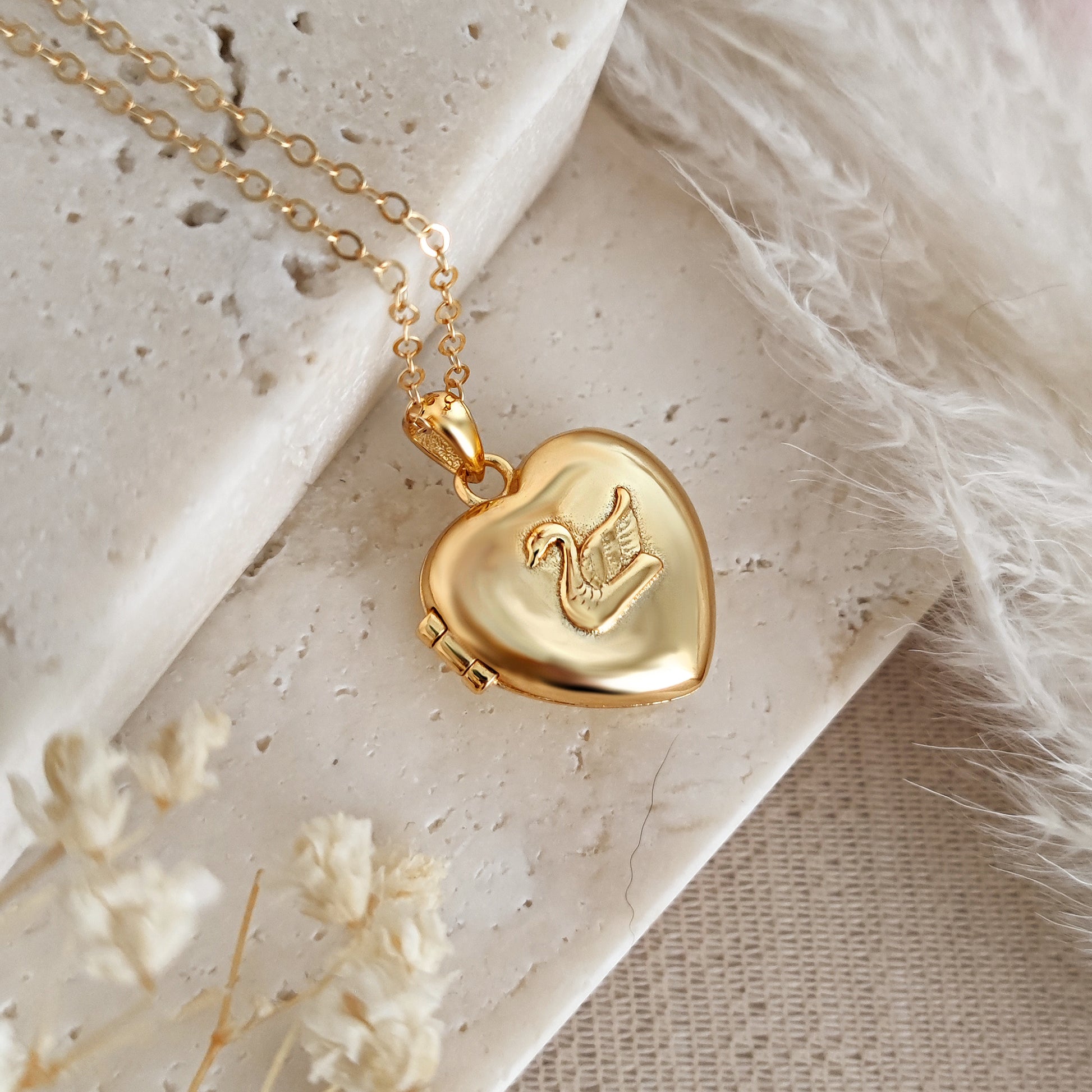 Collana Cuore apribile Cigno, oro - SMALL ARGENTO PLACCATO ORO 22K