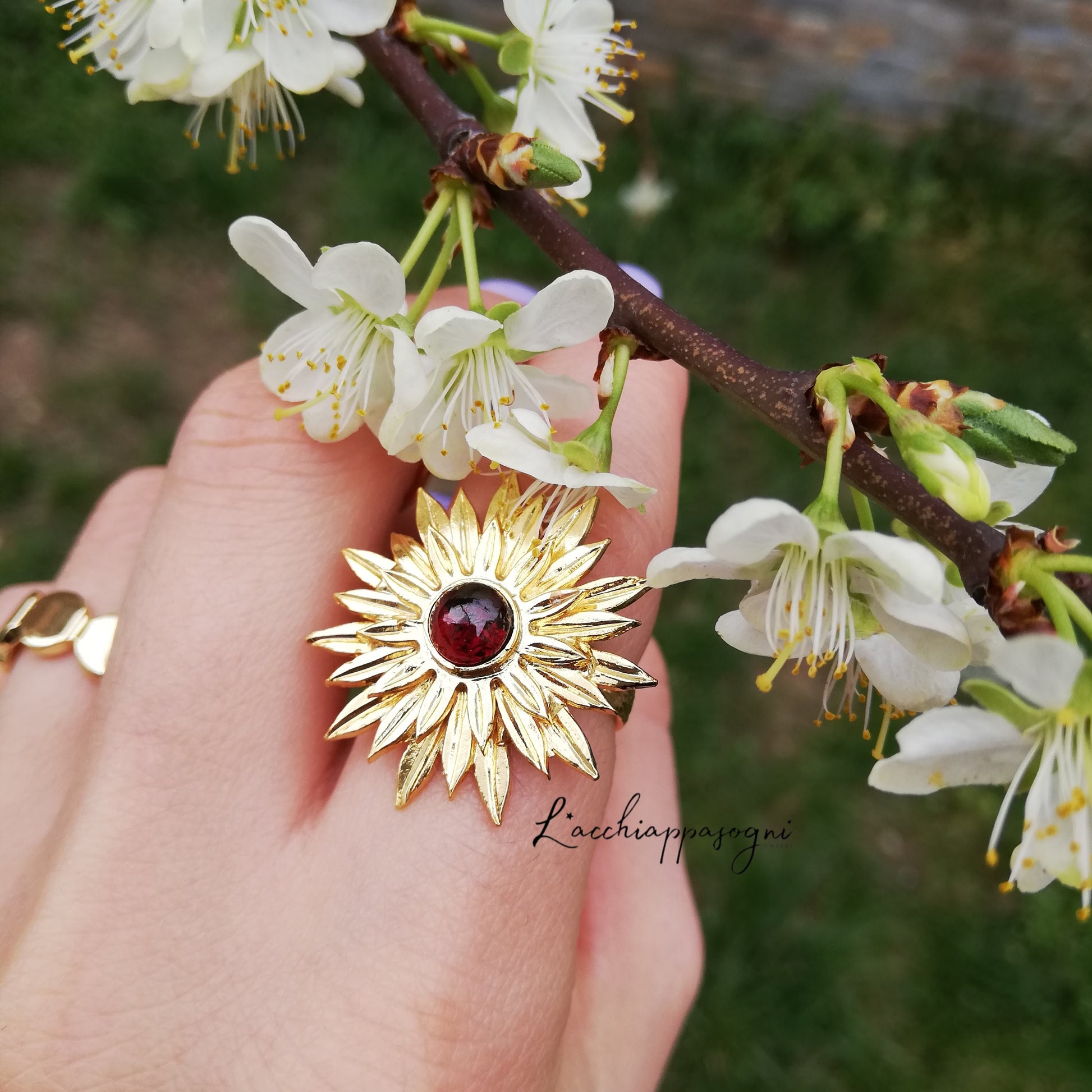 Anello "Garnet Sunflower"