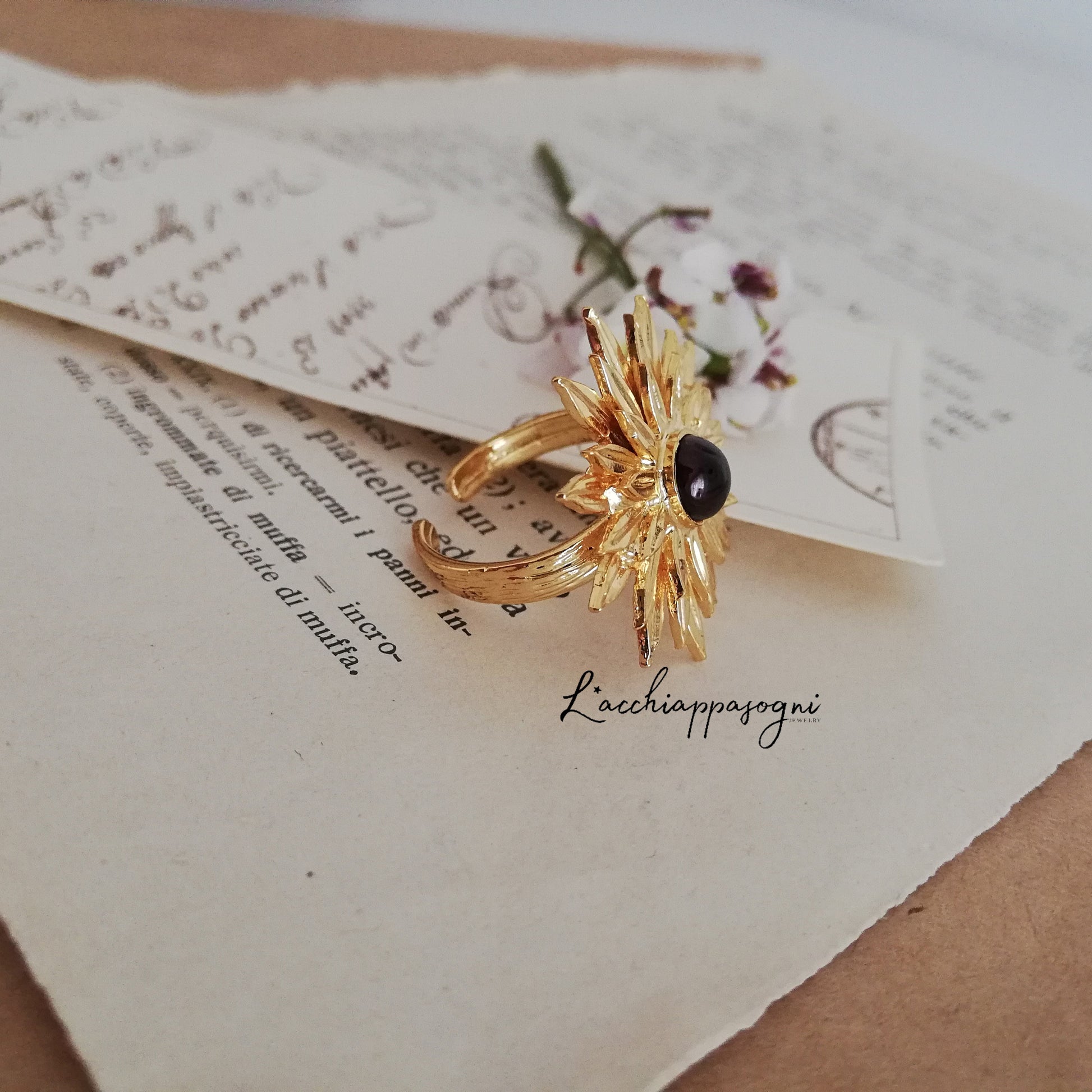 L'anello è in ottone placcato oro 16k.