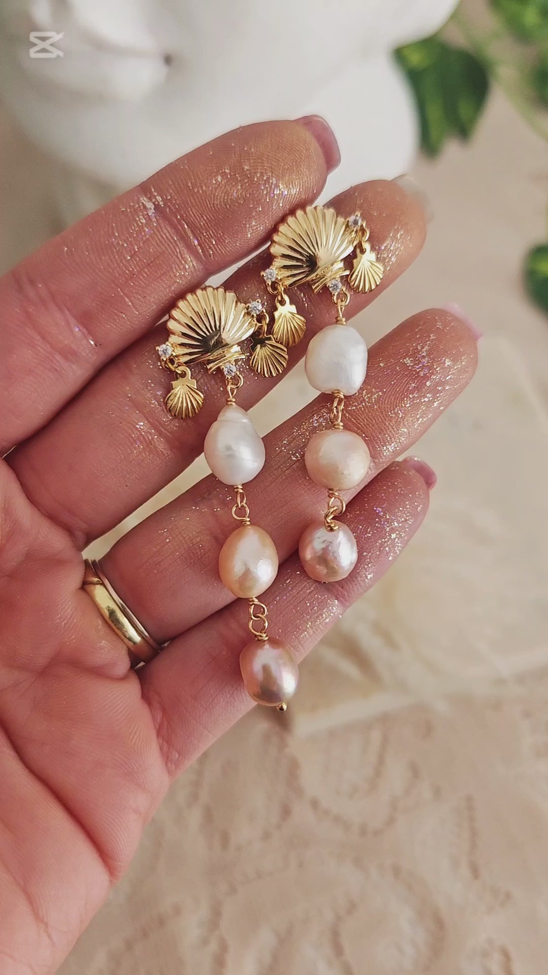 Materiali: ottone placcato oro 14k, cubic zirconia, perle di fiume